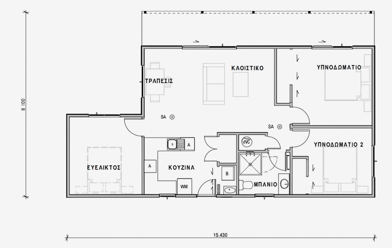 2. Σπίτι 80 τετραγωνικών μέτρων με δύο υπνοδωμάτια