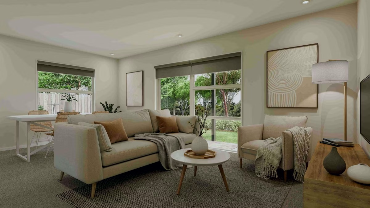 Και ένας συνδυασμένος χώρος καθιστικού και τραπεζαρίας βελτιώνει το φυσικό φως και δημιουργεί μια αίσθηση ανοίγματος. Τα μεγάλα παράθυρα ή οι συρόμενες πόρτες ενισχύουν περαιτέρω τον εξαερισμό και τη φωτεινότητα.