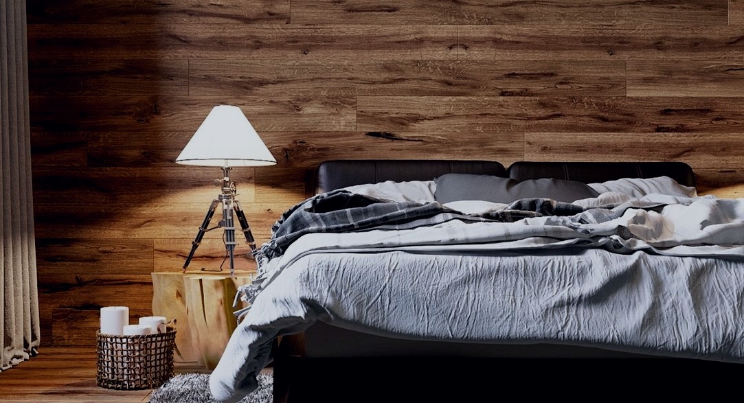 Συνδυάζοντας το υπόλοιπο ξύλο που χρησιμοποιείται σε αυτό το σπίτι, το βοηθητικό τραπέζι είναι ένα ξύλινο κούτσουρο. Αυτό το μοναδικό σχέδιο έρχεται σε καλή αντίθεση με το αυτοσχέδιο φωτιστικό τέχνης πάνω του. Το μαύρο κεφαλάρι έρχεται επίσης σε αντίθεση με το ξύλο που χρησιμοποιείται στον πίσω τοίχο. Αυτό το δωμάτιο έχει μια συνολική αρρενωπή αίσθηση.