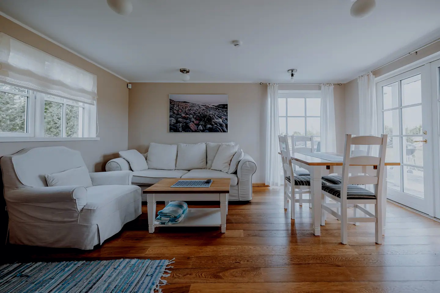 - Σαλόνι: Ένας κεντρικός χώρος για χαλάρωση, παρακολούθηση τηλεόρασης ή για να περνάτε χρόνο με τους καλεσμένους σας.